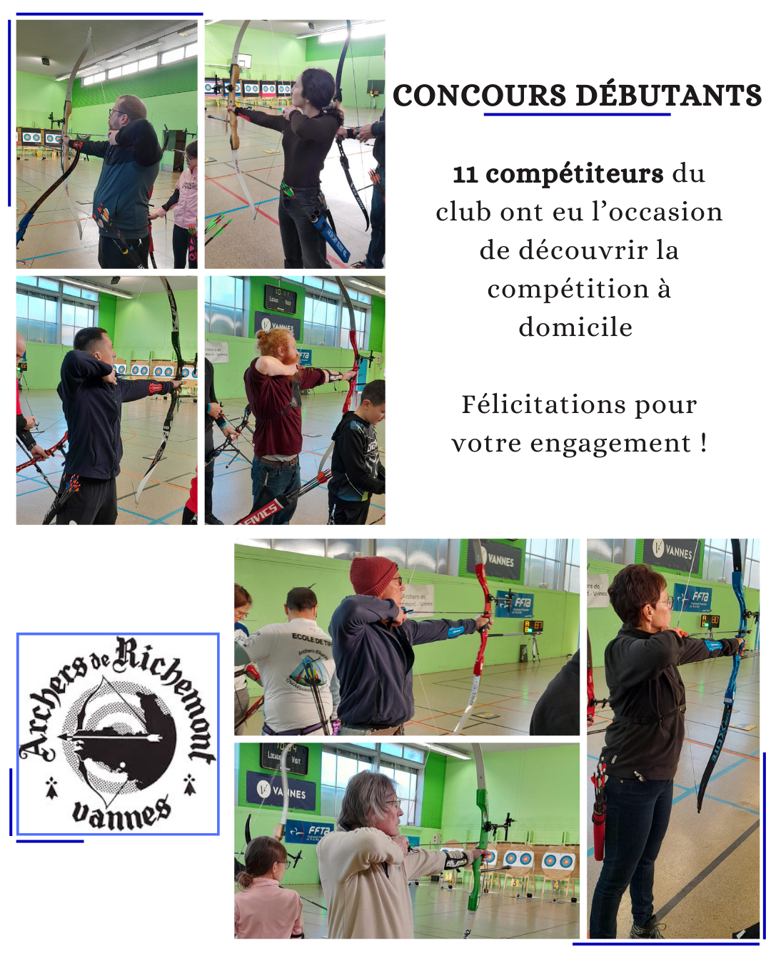 Merci à tous les archers venus de toute la Bretagne : Auray, Baden, Kervignac, La Vraie Croix, Ploermel, Riec sur Belon, St Quay Portrieux, Vannes (Richemont), Vannes Asppt