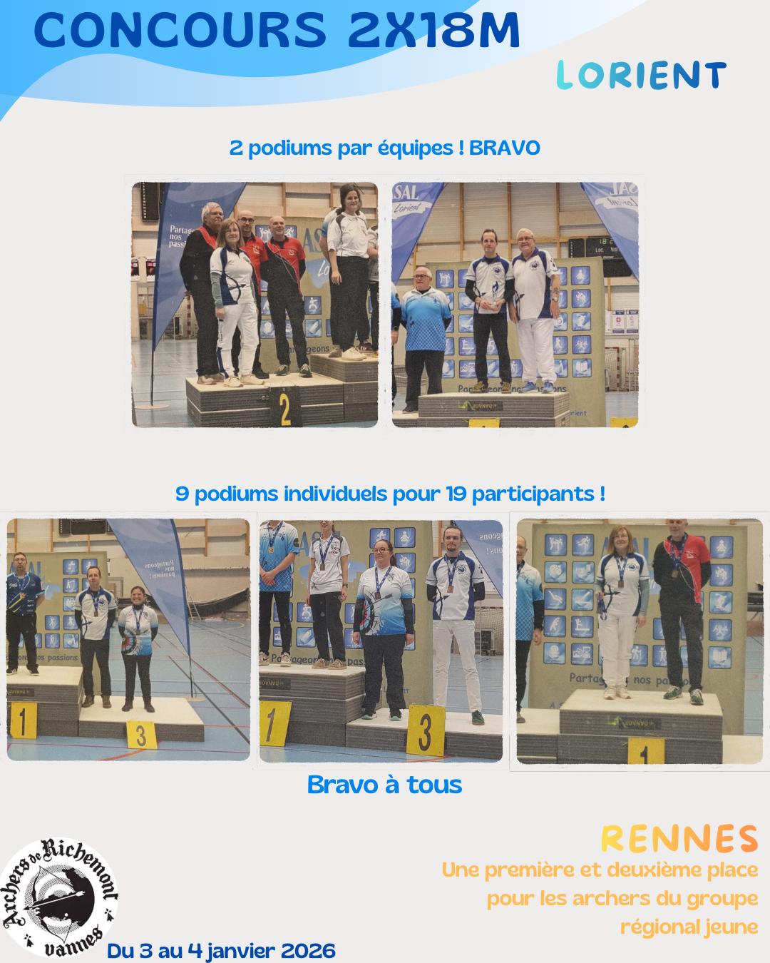 Lors de cette première compétition de l’année 2026, 19 de nos archers se sont rendus à Lorient et 2 jeunes à Rennes.