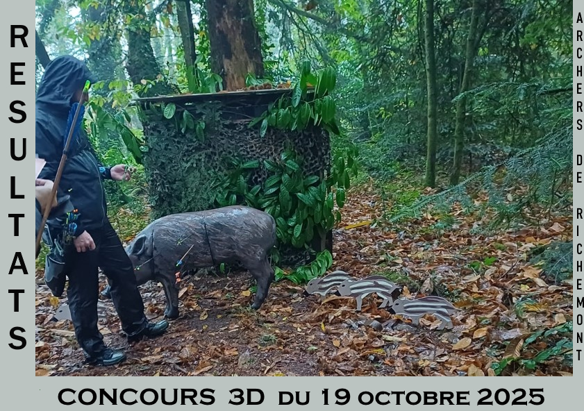 Ce dimanche 19 octobre, les Archers de Richemont ont eu le plaisir d’accueillir 108 archers sur le site de Roscanvec pour ce concours 3D. Malgré une météo fort mauvaise, merci aux compétiteurs d’être venus si nombreux. Ils nous ont dit avoir bien apprécié le parcours concocté par notre équipe de bénévoles.