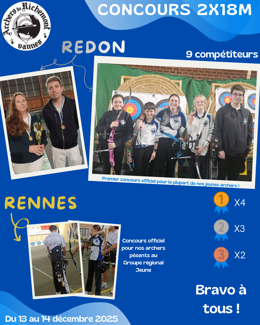 UN BRAVO tout particulier à nos jeunes débutants pour cette première participation à une compétition officielle les 13/14 décembre à Redon.